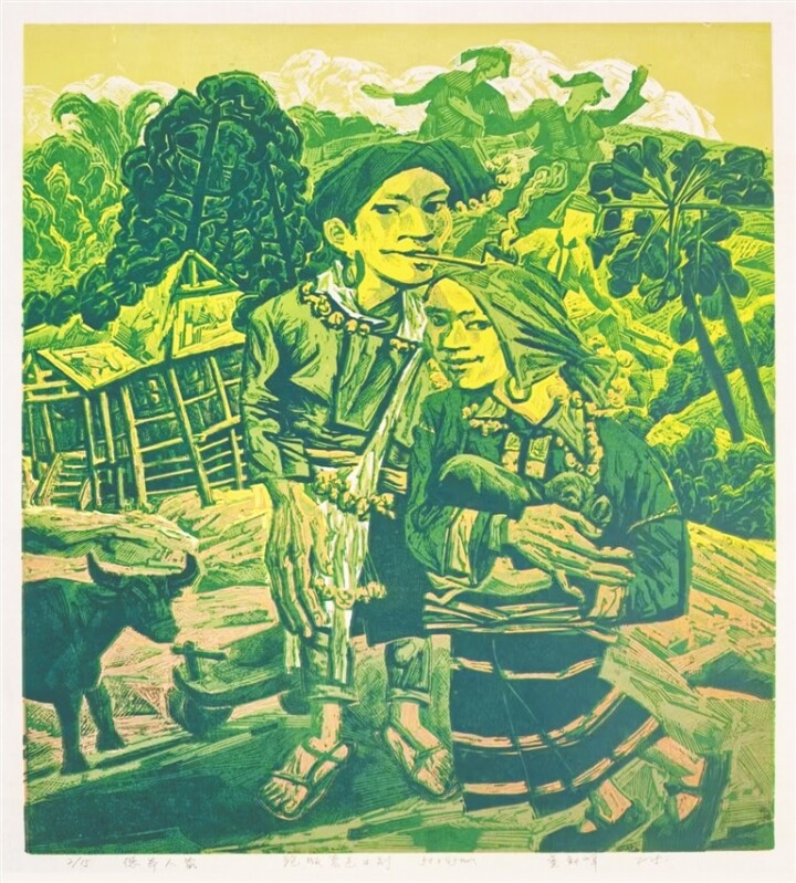 绝版套色木刻区域则是一场色彩的盛宴。艺术家们运用高明度、高饱和度的色彩语言,创造出既扎根云南又面向世界的视觉文本。特别是一些表现民族节日的作品,将民族服饰与现代理念巧妙融合,形成了一种既传统又现代的视觉语言。
